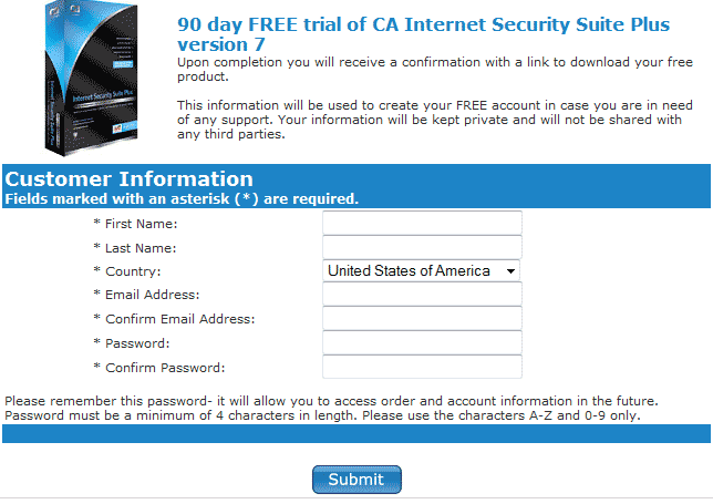 Below is the step by step procedure to avail the free license key / activation code for the full version download of CA Internet Security Suite And Antivirus Plus 2010 :